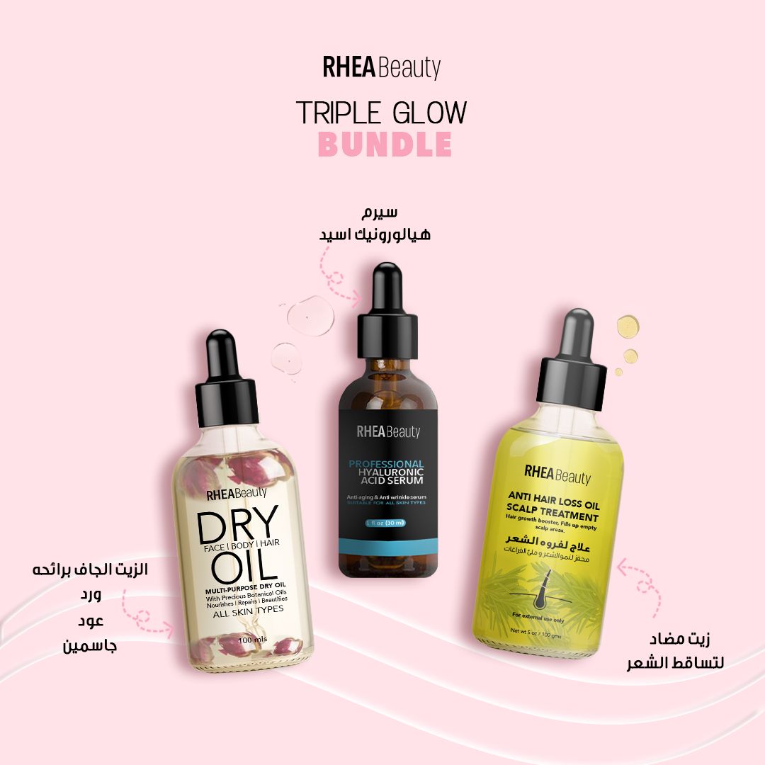 Triple Glow Bundle( hyaluronic acid serum- dry oil rose 100ml - anti hair loss )